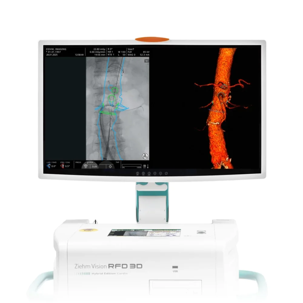 Il Ziehm Vision RFD 3D è un moderno arco a C mobile con imaging 3D ad alta qualità e capacità avanzate di imaging 2D/3D intraoperatorio. Grazie alla tecnologia integrata Endovascular Navigation con fusione di immagini, i dati preoperatori della TC vengono integrati direttamente con la fluoroscopia live, offrendo precisione superiore nelle procedure vascolari complesse come EVAR e FEVAR e un flusso di lavoro intuitivo e rapido direttamente in sala operatoria.