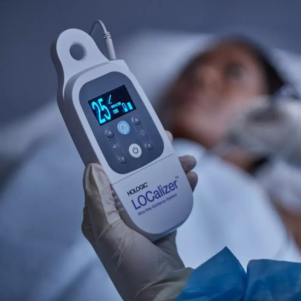 LOCalizer è un sistema a radiofrequenza che consente di localizzare le lesioni mammarie ed effettuare interventi guidati con precisione e semplicità senza utilizzare fili metallici.